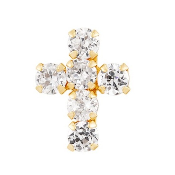 925 Sterling Silver White Cubic Zirconia Cross Button Stud Earrings with 18K Gold Plating Images |